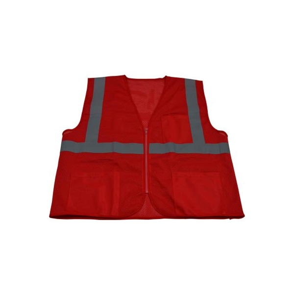 features: hivis fluorescent red mesh fabric / 2" reflective tapes non-ansi rated for enhanced visibility & identification purposes zipper closure 3 pockets sizes available: s/m, l/xl, 2xl/3xl, 4xl/5xl