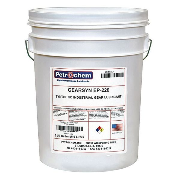 Synthetic Gear Lubricant, Food Grade, 5 Gal., SAE Grade 90, Viscosity Index 134, ISO Viscosity Grade 220, Temp. Range -45 to 500 F, Flash Point 430 F, Pour Point -45 F, Provides Oxidation Stability, Rust, Corrosion and EP Wear Protection, For Gear Systems Operating in the Food Processing Industries, Standards NSF H-2, Flash Point 221 C, For Use With Gear Systems, Pour Point -40 C, Timken OK Load 65 lbs., Viscosity 212 cSt @ 40 C, Viscosity 26.4 cSt @100 C