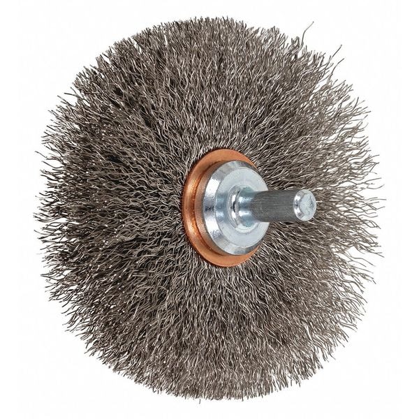 3" Crimped Shank Mtd Wheel Brush - .008 SS Wire, 1/4" Shank