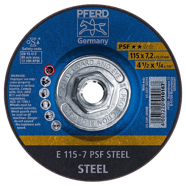 4-1/2" x 1/4 Grinding Wheel, 5/8-11 Thd. - PSF STEEL - Type 27