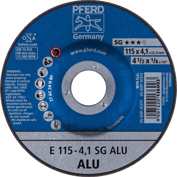 4-1/2'' x 1/8 Grinding Wheel, 7/8'' A.H. - SG ALU - Type 27