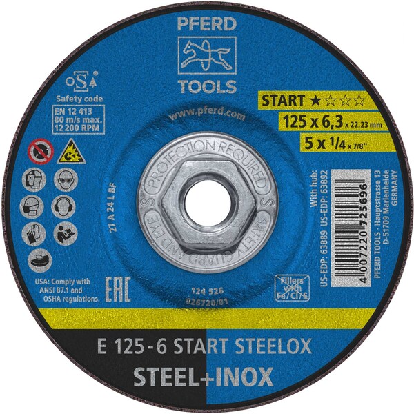 5'' Grinding Wheel, 1/4'' Thick, 5/8''-11 Thread, START STEELOX, Type 27, Aluminum Oxide