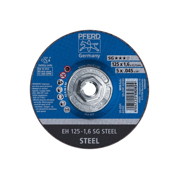 5" x .045" Cut-Off Wheel, 5/8-11 Thd. - SG STEEL - Type 27 (Discontinued)