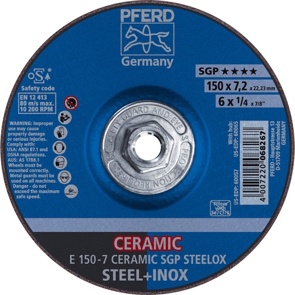 6'' x 1/4 Grinding Wheel, 5/8-11 Thd. - CERAMIC SGP STEELOX - Type 27