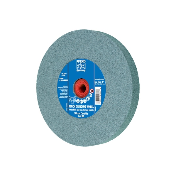 6" x 3/4" Vitrified Bench Wheel - 1" A.H., Silicon Carbide, 80 Grit