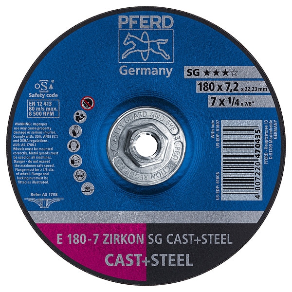 7" x 1/4 Grinding Wheel, 5/8-11 Thd. - ZIRKON SG CAST+STEEL - Type 27