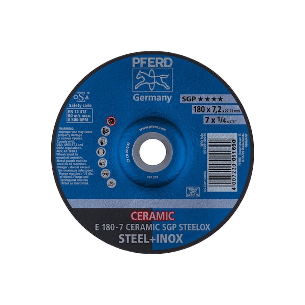 7" x 1/4 Grinding Wheel, 7/8" A.H. - CERAMIC SGP STEELOX - Type 27