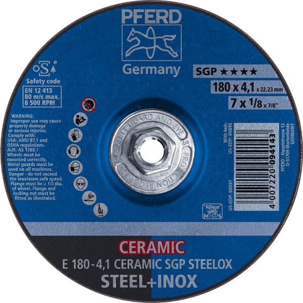 7'' x 1/8 Grinding Wheel, 5/8-11 Thd. - CERAMIC SGP STEELOX - Type 27