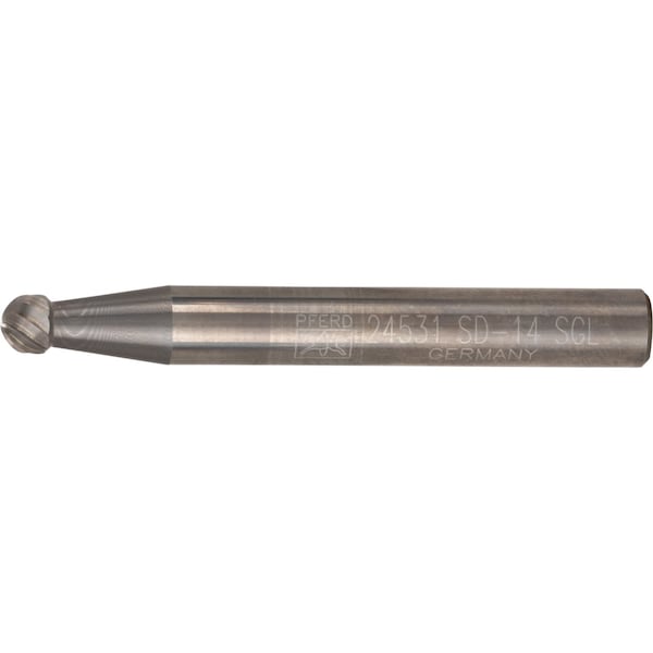 Carbide Bur - Ball Shape, SGL Cut - 3/16" x 1/8" x 1/4" Shank - SD-14