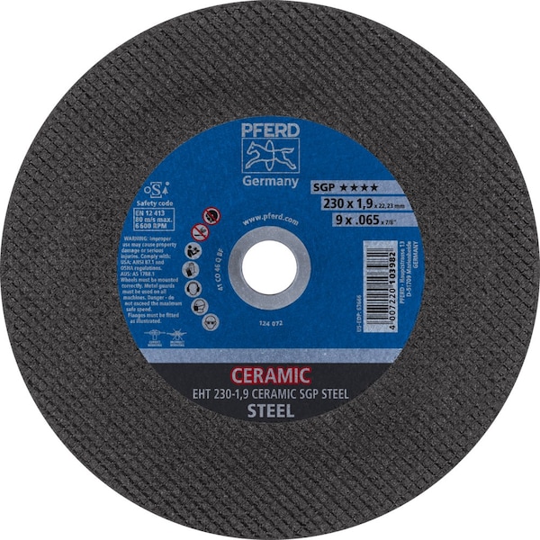 Cut-Off Wheel, Type 1, 9 in Dia, 0.065 in Thick, 7/8 in Arbor Hole Size, Ceramic CO