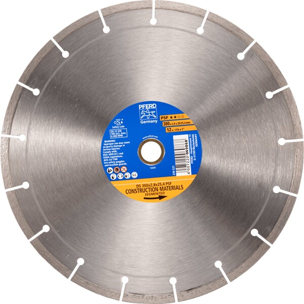 PFERD TOOLS diamond cut-off wheels are manufactured in compliance with the highest quality and safety standards. They provide optimum cutting results and allow efficient processing of different materials, e.g. concrete, exposed aggregate concrete, clinker brick, hard stone, granite and other abrasive building materials. The product range offers the best tool for any application. General-purpose segmented-rim tool for aggressive, fast cutting with high cutting performance and a good tool life.