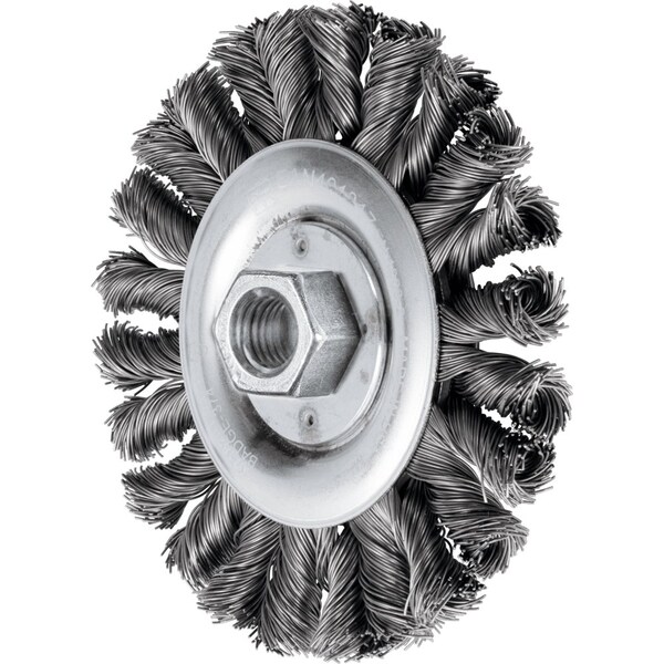 - Aggressive brushing action due to tightly-twisted wire knots.