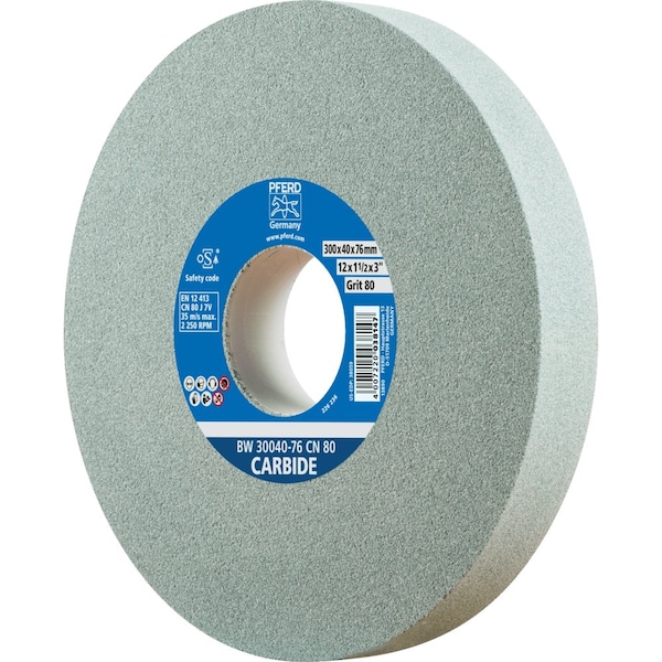 PFERD Vitrified Bench Wheel, CARBIDE, 12in x 1-1/2 x 3, 80 Grit, Silicon Carbide