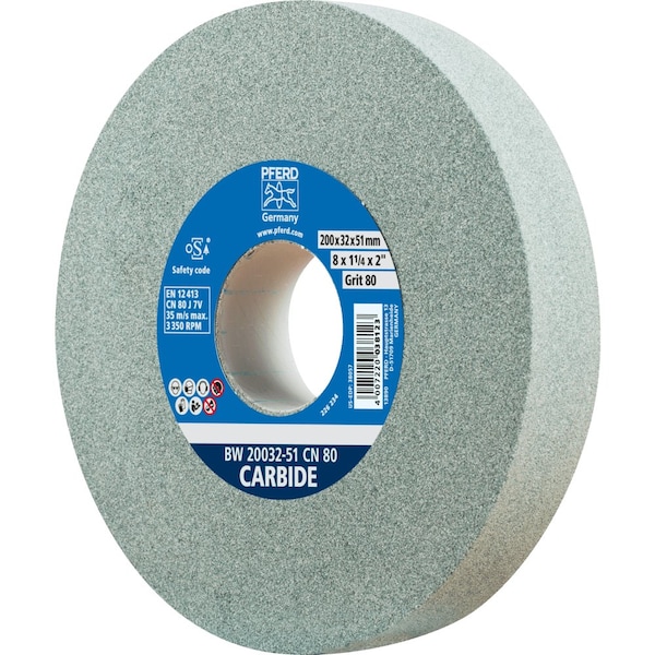 PFERD Vitrified Bench Wheel, CARBIDE, 8in x 1-1/4 x 2, 80 Grit, Silicon Carbide