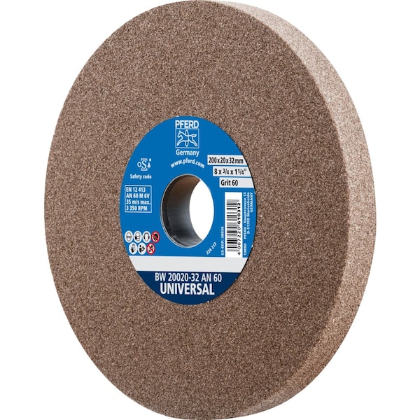 PFERD Vitrified Bench Wheel, UNIVERSAL, 8in x 3/4 x 2, 60 Grit, Aluminum Oxide