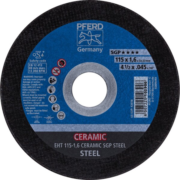 Super fast-cutting cut-off wheel with ceramic oxide grain for steel with outstanding service life. Optimized for use on steel workpieces with larger cross sections.