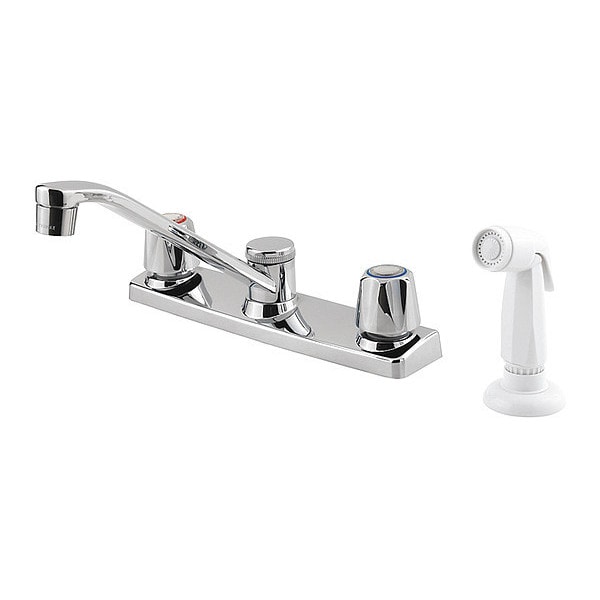 Kitchen Faucet w/Spray, 2-Handle, Chrome, 8" Mount, 4 Hole Residential (Discontinued)