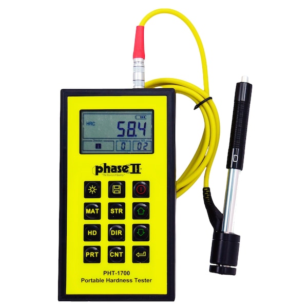 Economic Portable Hardness Tester. Best price, best features on the market today! Portable Hardness Tester specializing in testing large hard metal parts. Designed to test large hard parts: Example: Tool steel should be close to 1 thick of solid material. Loaded with features, this economically priced hardness tester is capable of measuring the surface hardness of a broad variety of metals on flat and round surfaces. This instrument comes complete with the universal D impact device, calibrated test block and rugged carry case.