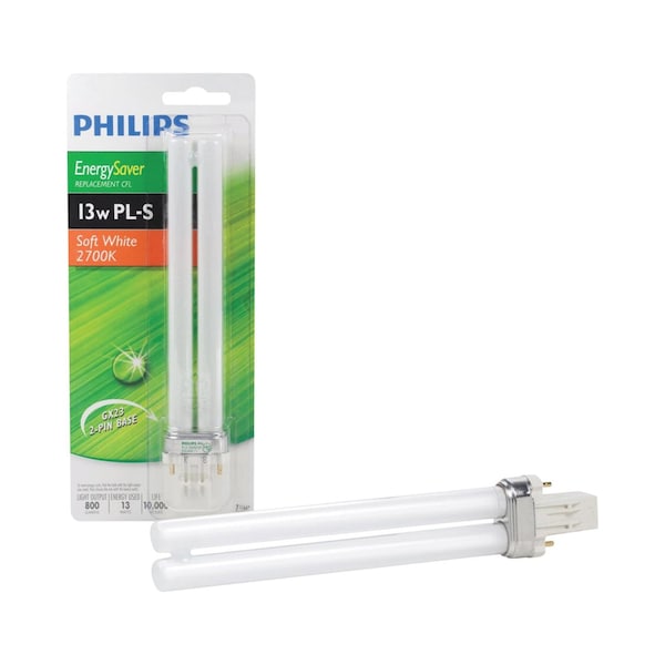 Philips Energy Saver Compact Fluorescent Non-Integrated (CFLni) 13W PL-S 2-pin base light bulb is ideal for use in kitchens and offices. It offers significant energy savings in a compact size and provides a soft white light. Philips Energy Saver CFLni light bulbs can be used in surface mounted downlight fixtures and recessed cans. This light bulb should only be used in fixtures with a magnetic ballast.