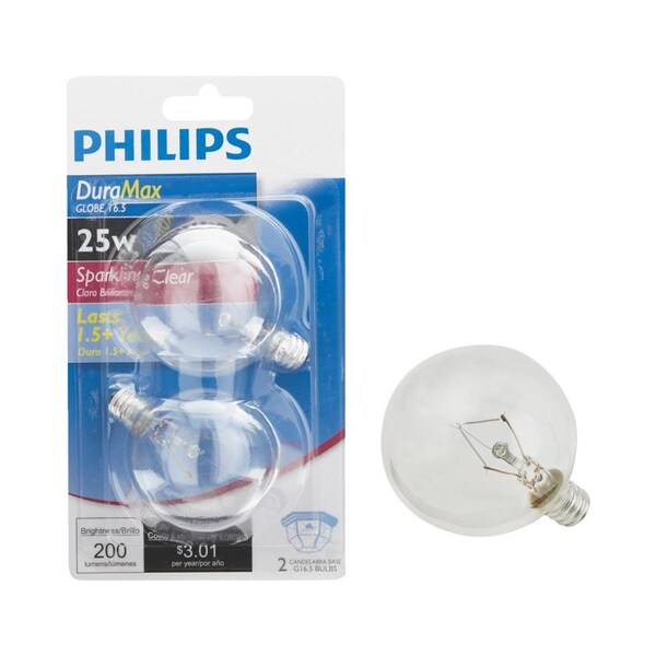 DuraMax 25 W G165 Globe Incandescent Bulb E12 Candelabra Soft White, 2PK (Discontinued)