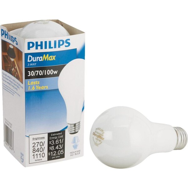 Philips Duramax 100 W A21 Three Way Bulb A-Line Incandescent Bulb E26 (Medium) Soft White 1 pk