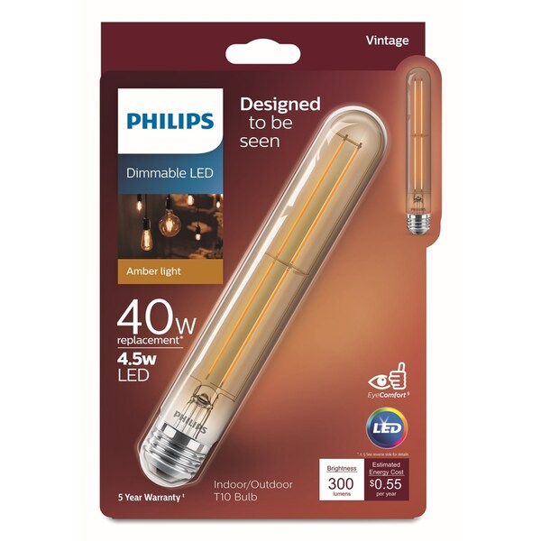 Imagine the look of vintage incandescent bulbs with the benefits of LED. With glowing filaments and cozy warm light Philips vintage filament LED bulbs combine retro style with modern energy efficiency. They come in familiar shapes you know and love use up to 90% less energy* than traditional bulbs and last up to ten times longer. They are perfect for a variety of styles and will compliment your fixtures with their nostalgic charm.