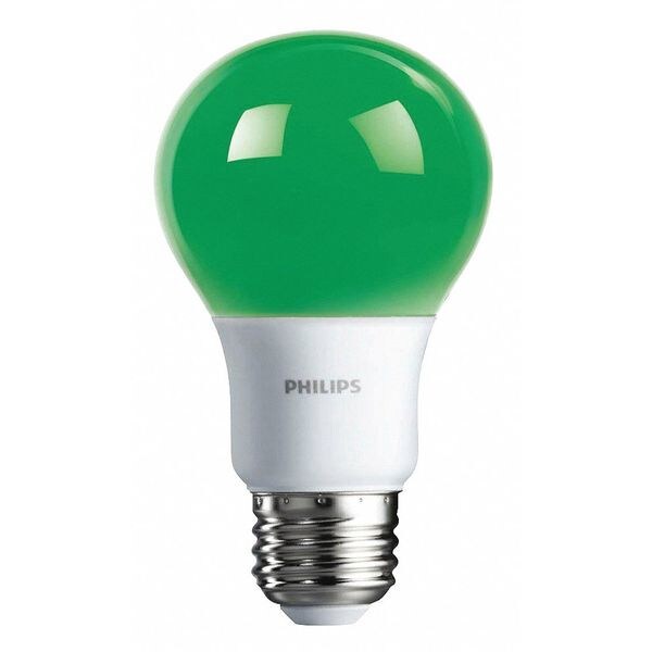 LED Lamp, Bulb Shape A19, Dimmable No, Polycarbonate Bulb Housing, Bulb Base Type Medium Screw (E26), 8.0 Watts, LED, Light Appearance No Rated Color Temp, Green, Average Bulb Life 10,000 hr., Bulb Type Standard, Bulb Beam Angle 360 Degrees , Light Distribution 360 Degrees , Voltage 120, Max. Overall Bulb Length 2-1/2 In., Light Bulb Dia. 2-3/8 In.