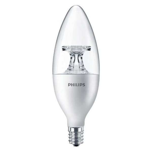 LED Lamp, Bulb Shape B11, Dimmable Yes, Glass Bulb Housing, Bulb Base Type Candelabra Screw (E12), 4.5 Watts, Wattage Equivalency 40W INC, Bulb Color Temp. 2700K, LED, Light Appearance 2700 to 2999K, Warm White, Average Bulb Life 15,000 hr., Color Rendering Index 80, Bulb Type Decorative, Bulb Beam Angle 360 Degrees , Lumens 300, Light Distribution Omnidirectional, Voltage 120, Max. Overall Bulb Length 4-1/8 In., Light Bulb Dia. 1-13/32 In.