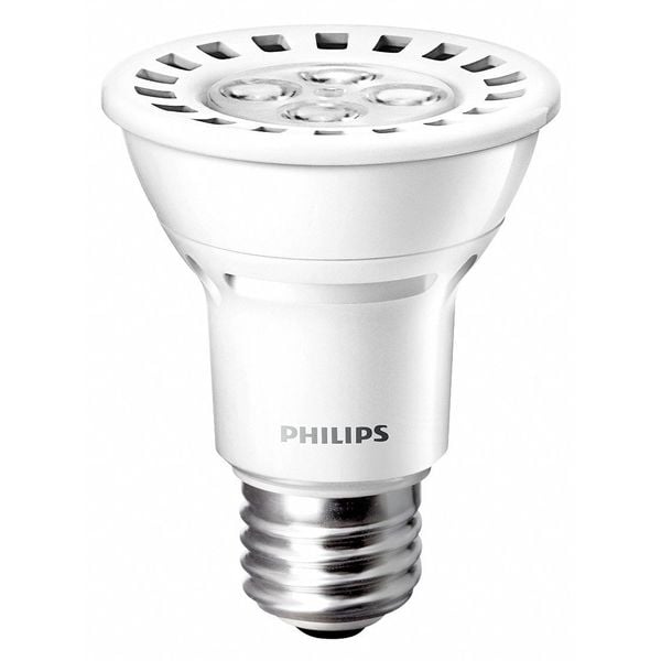 LED Lamp, Dimmable, Lamp Type Indoor Flood, Lamp Shape PAR20, Base Type Medium, 8 Watts, Voltage 120, Incandescent Equivalent (Watts) 50, Initial Lumens 425, Color Temp. 2700K, 80 CRI, Average Life 45,000 hr., 2700 Color, Max. Overall Length 3.5 In., Bulb Dia. 2.5 In., Beam Angle 36 Degrees , Lamp Designation 8PAR20/END/F36 2700 DIM 6/1