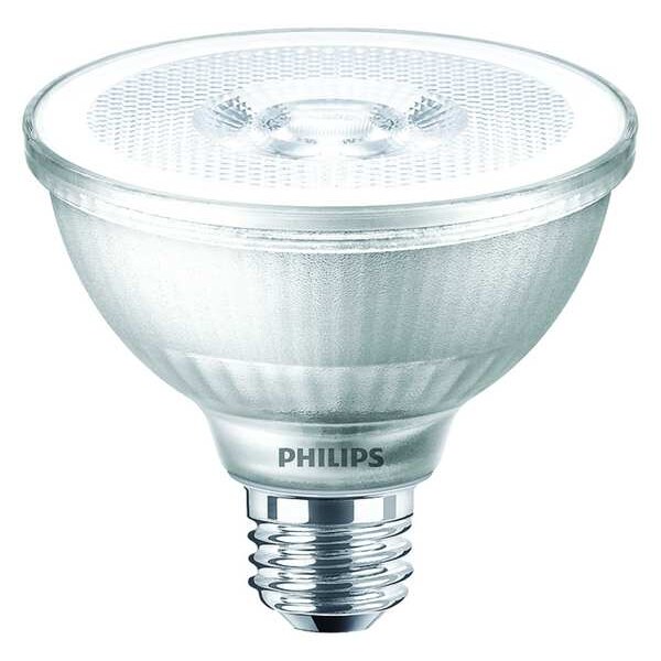 LED Lamp, Bulb Shape PAR30S, Dimmable Yes, Glass Bulb Housing, Bulb Base Type Medium Screw (E26), 12.0 Watts, Wattage Equivalency 75W HAL, Bulb Color Temp. 3000K, LED, Light Appearance 3000 to 3999K, Warm White, Average Bulb Life 25,000 hr., Color Rendering Index 80, Bulb Type Reflector, Bulb Beam Angle 40 Degrees , Lumens 850, Light Distribution Flood, Voltage 120, Max. Overall Bulb Length 3-1/2 In., Light Bulb Dia. 3-3/4 In.
