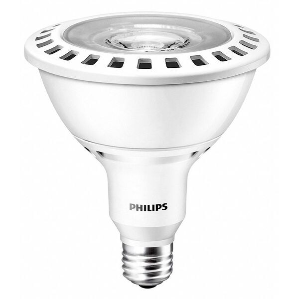 LED Lamp, Bulb Shape PAR38, Dimmable Yes, Glass Bulb Housing, Bulb Base Type Medium Screw (E26), 13.0 Watts, Bulb Color Temp. 3000K, LED, Light Appearance 3000 to 3999K, Warm White, Average Bulb Life 25,000 hr., Color Rendering Index 80, Bulb Type Reflector, Bulb Beam Angle 25 Degrees , Color Tuning Dim to Warm, Light Distribution Flood, Voltage 120, Indoor Only, Lumens 950, Max. Overall Bulb Length 5-13/64 In., Light Bulb Dia. 4-51/64 In.