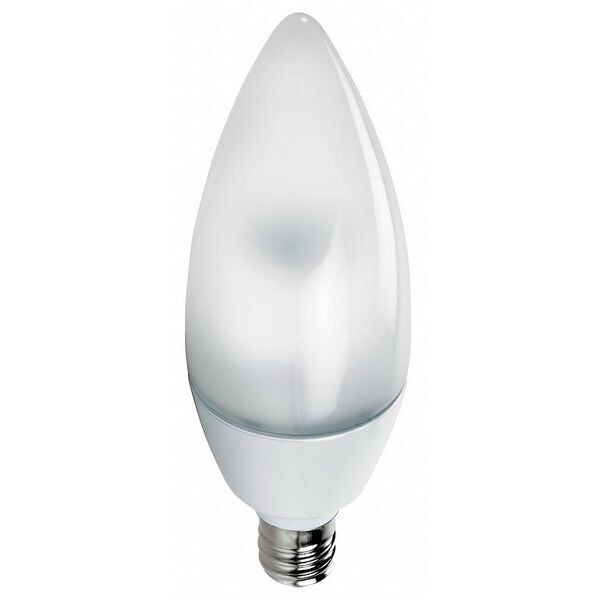 LED Lamp, Non-Dimmable, Lamp Shape B10.5, Base Type Candelabra Screw, 30 Lumens, Voltage 120, 2.5 Watts, Color Temp. 3000K, Average Life 15,000 hr., Color Warm, CRI 80, Overall Length 4 In., Lamp Designation 3B10 1/2 END/FR WW 120V 8/1, Bulb Dia. 1.3 In., Type Decorative, Energy Star Compliant No, Trade Number 3B10 1/2 END/FR WW 120V 8/1, Footnotes LED, Replaces 25W Candle, Special Features Frost, Green Certification or Other Recognition RoHS Compliant