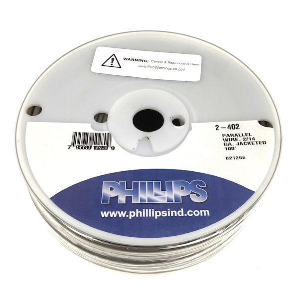 Wire, Elect, Parallel, 2/14Ga, Black, White, Gray Jacket, 100 In. Length