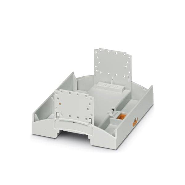 DIN rail housing for use in distribution boards in accordance with DIN 43880 Lower housing part with base latch width: 107.6 mm height: 89.7 mm depth: 48.9 mm color: light gray 7035 cross connection: DIN rail connector optional