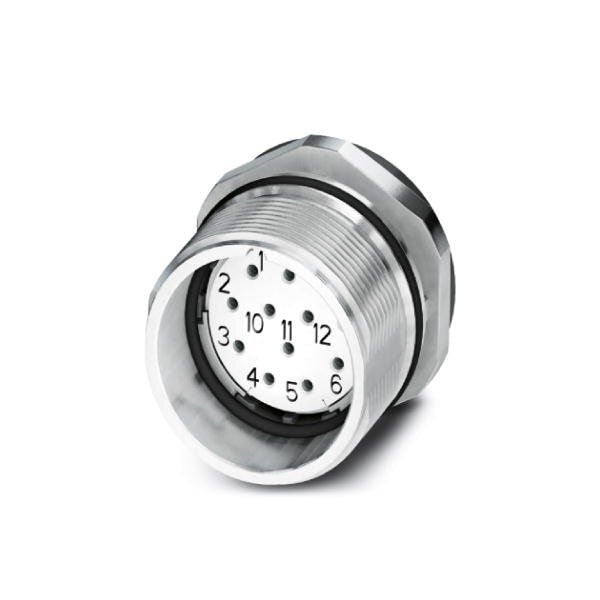 Device connector front mounting CA straight shielded: yes for standard and SPEEDCON interlock M23 No. of pos.: 16 type of contact: Socket Crimp connection Axial seal Central fastening M20 x 1.5 coding:N