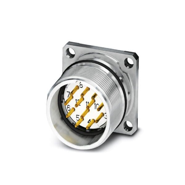 Device connector front mounting CA straight shielded: yes for standard and SPEEDCON interlock M23 No. of pos.: 17 type of contact: Pin Solder-in connection Flat gasket 4x 3.2 flange dimensions: 25 mm x 25 mm coding:N