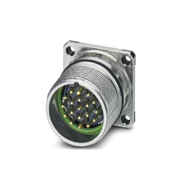 Device connector front mounting CA straight shielded: yes for standard and SPEEDCON interlock M23 No. of pos.: 16+2+PE type of contact: Pin Crimp connection Flat gasket 4x 3.2 flange dimensions: 25 mm x 25 mm coding:N
