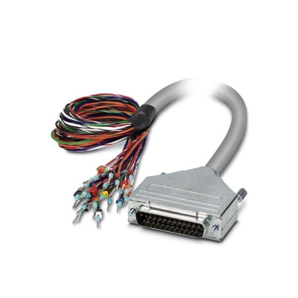 Assembled shielded round cable connection 1: Single wires 25-position The wires are marked and fitted with ferrules; connection 2: D-SUB pin strip 1x 25-position; cable length: 1 m