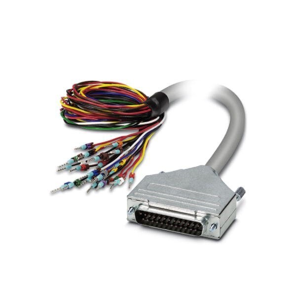 Assembled shielded round cable connection 1: Twisted pair 25-position The wires are marked and fitted with ferrules; connection 2: D-SUB pin strip 1x 25-position; cable length: 1 m