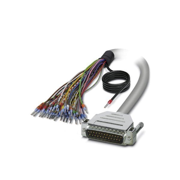 Assembled shielded round cable connection 1: Single wires 25-position The wires are marked and fitted with ferrules. The braided shield is routed to a separate cable end.; connection 2: D-SUB pin strip 1x 25-position; cable length: 0.5 m