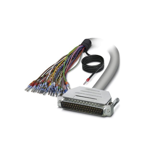 Assembled shielded round cable connection 1: Single wires 37-position The wires are marked and fitted with ferrules. The braided shield is routed to a separate cable end.; connection 2: D-SUB pin strip 1x 37-position; cable length: 4 m