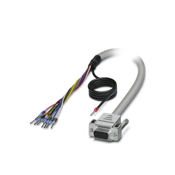 Assembled shielded round cable connection 1: Single wires 9-position The wires are marked and fitted with ferrules. The braided shield is routed to a separate cable end.; connection 2: D-SUB socket strip 1x 9-position; cable length: 2 m
