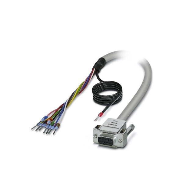 Assembled shielded round cable connection 1: Single wires 9-position The wires are marked and fitted with ferrules. The braided shield is routed to a separate cable end.; connection 2: D-SUB socket strip 1x 9-position; cable length: 6 m