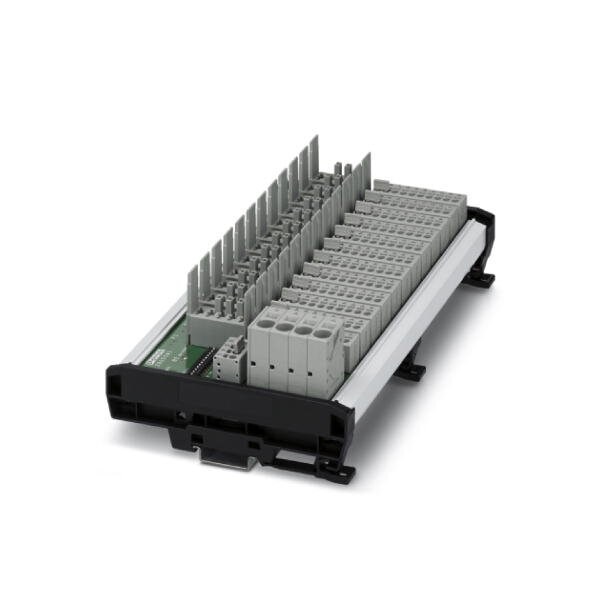 Device circuit breaker boards for twelve thermomagnetic CB TM1... or electronic CB E1... NO circuit breakers with group remote signaling central supply connection for relay contacts and potential distribution for up to four loads per channel.