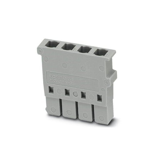 Connector housing nom. voltage: 250 V nominal current: 10 A connection method: Plug connection number of connections: 4 number of positions: 4 cross section: 0.5 mm - 2.5 mm AWG: 20 - 14 width: 5.2 mm height: 13 mm color: gray mounting type: Plug-in mounting