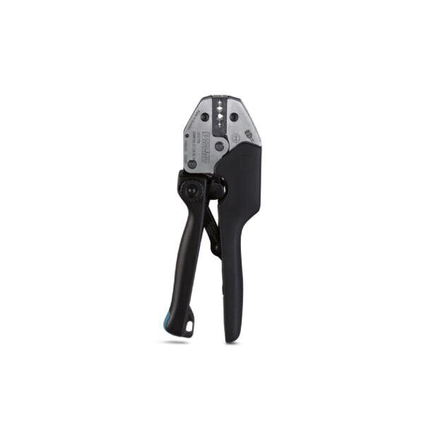 Crimping pliers compact pliers coaxial connectors HDTV BNC TNC 1.04 mm 4.52 mm 6.48 mm 7.06 mm four marked die stations unlockable pressure lock lateral entry