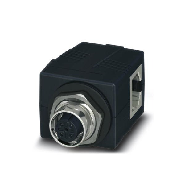 Control cabinet feed-through M12 4-pos. D-coded to RJ45 socket socket entry: 90° IP65/IP67
