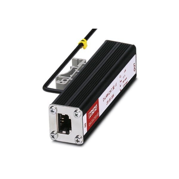 Fine surge protection in accordance with Class D CAT.5e for token ring and Ethernet. RJ45 attachment plug with separate grounding cable and snap-on foot for NS 35/7.5 DIN rails