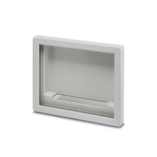 Display housing 15 light gray central window front level with cutout for connection technology angle plate consisting of two half shells with screws
