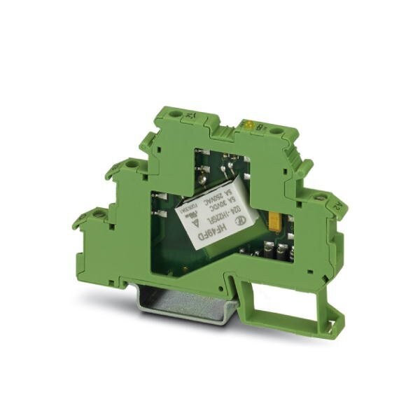 Relay terminal block for actuator with soldered-in miniature relays contact AgNi+Au: small to medium loads 1 N/O contact input voltage 24 V AC/DC for assembly on NS 35/7.5 terminal width 6.2 mm